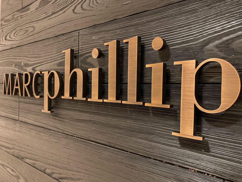 Our Brass Letters and Logo signs offer an elegant and classic look that is commonly found in the most upscale environments. Brass offers that yellow gold color that will transform any interior or exterior space. Our Solid Brass Letters and Logo signs can be custom cut to match any font style or custom logo. And we offer a wide variety of Brass finishes like Brushed Brass, Polished Brass, and Oxidized Oil Rubbed Brass.